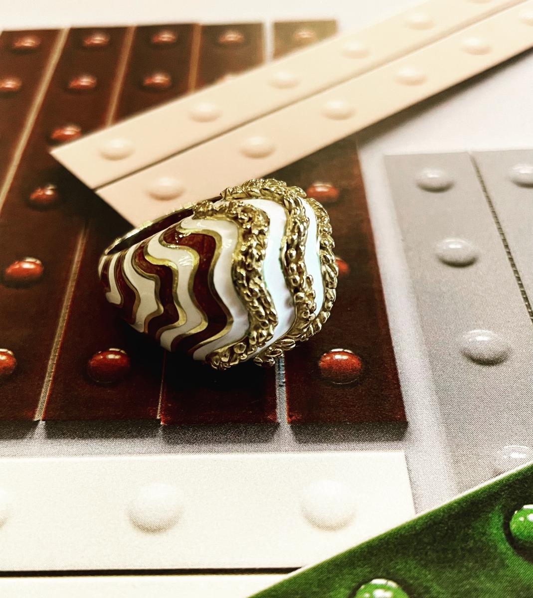 The showroom in the historic centre of Turin is home to a continuously changing collection, comprising mainly of vintage jewellery from the 20th century, stylish geometric platinum and diamond Art Deco jewellery, red gold jewellery from the 1940s, cocktail rings from the 1950s, enamel and animalier jewellery from the 1960s, and a wonderful selection of 1970s designs.